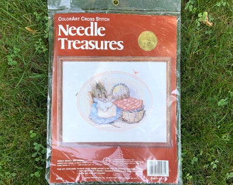 Needle Treasures Vintage Cross Stitch Kit - Beatrix Potter Hunca Munca and Babies 1988 - embroidery cross stitch kit with thread and needle