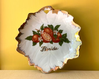 Vintage Florida Souvenir Plate by GF Japan - Florida Orange Leaf Plate with Gold Trim - porcelain plate for wall display - retro roadtrip
