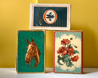 Instant Collection of 3 Vintage Playing Card Sets - 1930s to 1970s - Guild Flower Playing Cards - Imperial Playing Cards - American Airlines