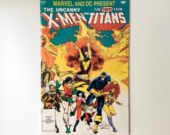 1982 The Uncanny X-Men and The New Teen Titans Comic number 1 - Marvel and DC - vintage X-Men Comic 1980s