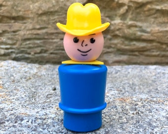 Vintage Fisher Price Little People Farmer Boy - play family farm replacement - blue body yellow hat boy FPLP kid