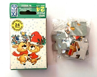 Vintage FX Schmid Mini-Puzzle - 24 piece complete Christmas dancing reindeer jigsaw puzzle - new in box - cute kids puzzle - new old stock