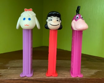 Instant Collection of 3 1990s PEZ Dispensers - Lucy Sheep Dino - Slovenia Pez Dispensers - footed pez dispensers