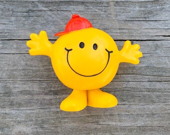 1971 Arby’s Mr Men Mr Bounce Figurine - Mr Men Collectible Figurine Hargreaves - yellow smiley with red baseball hat - Arbys promotional toy