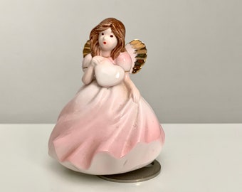 Vintage Josef Originals Musical Angel Figurine - pink dress angel figuring with gold wings and heart - Applause Inc Collectible