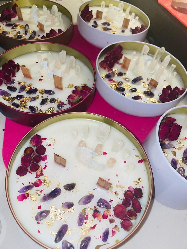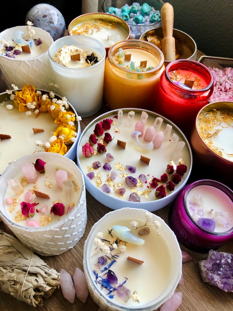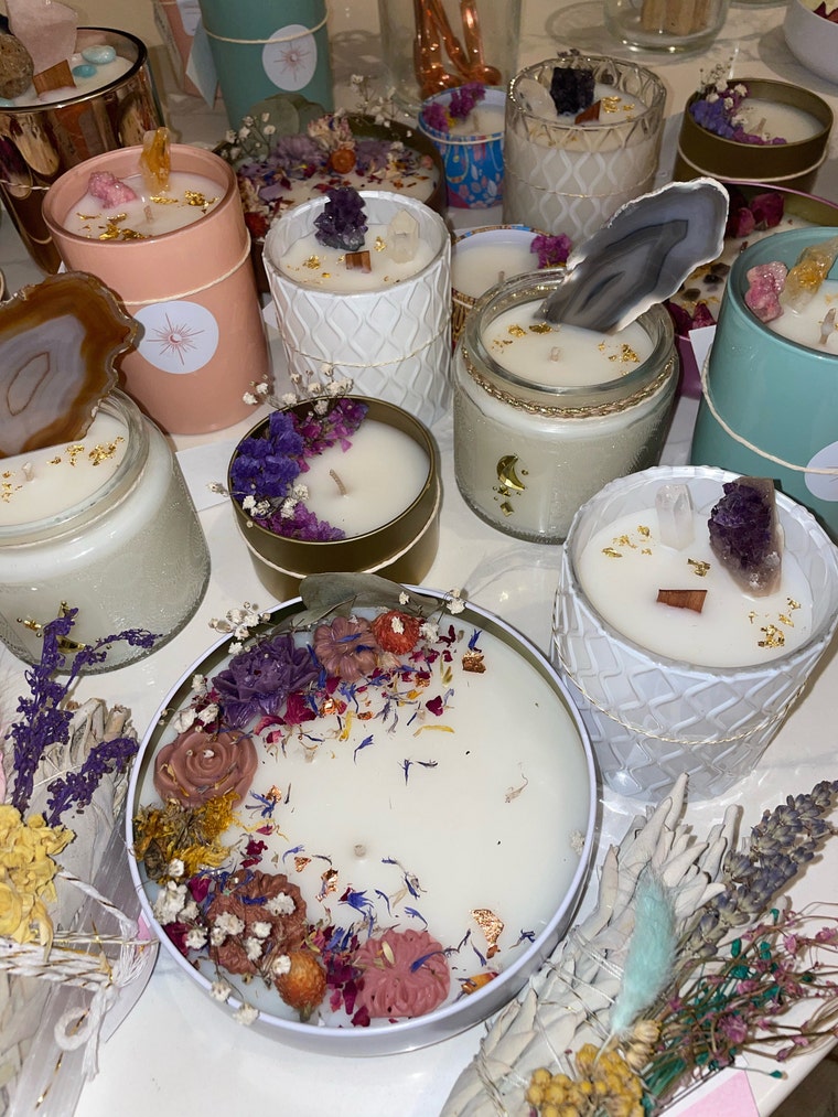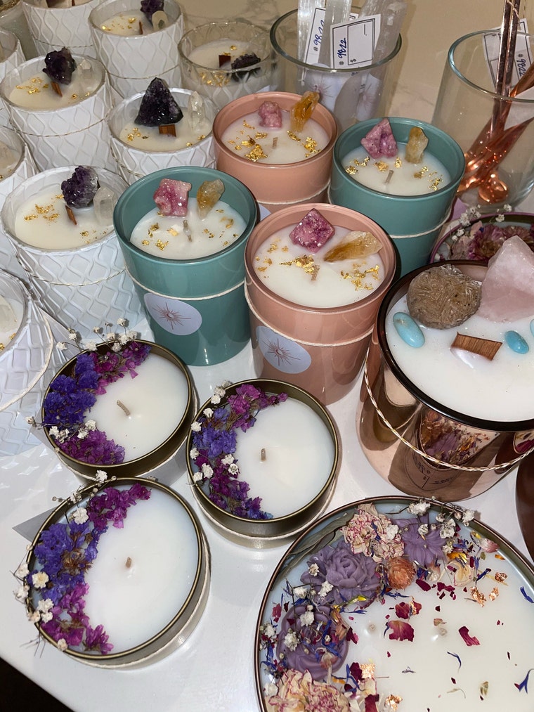 Could be the wine talking, could be too many moon rituals, but candles and crystals are my jam and I’d be lost without them both. I luv that crystals help better connect with your own intuition and guide you to hear subtle messages from the universe. I luv how calming candles are, setting a warm relaxing ambiance the moment you walk into a room. Let’s not forget how amazing they smell! I care a lot what goes into the products I create and select quality non toxic fragrance blends sourced locally.
