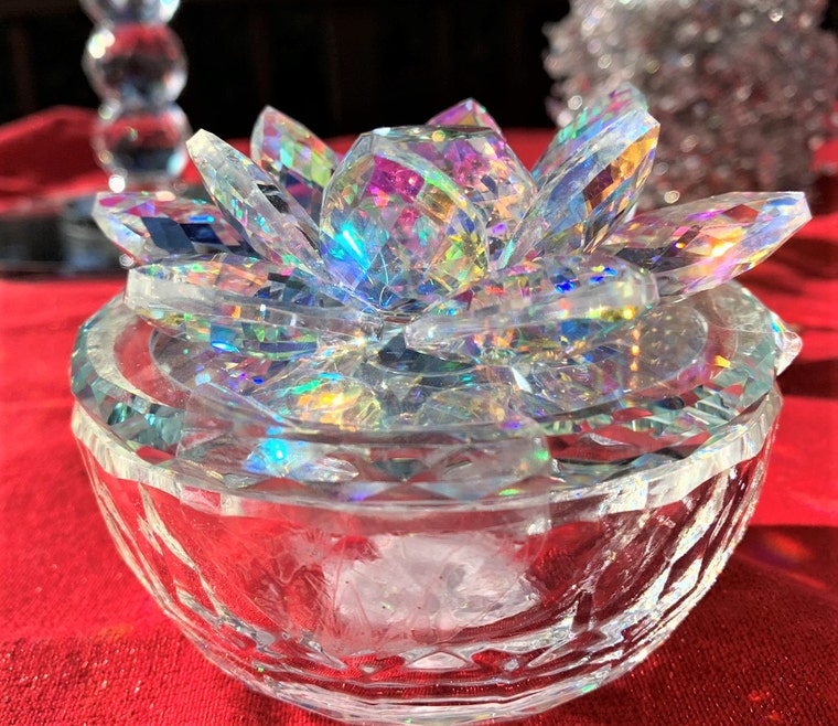 Gorgeous crystal box with Lotus Flower. Perfect for gifting a beautiful piece of jewelry. -