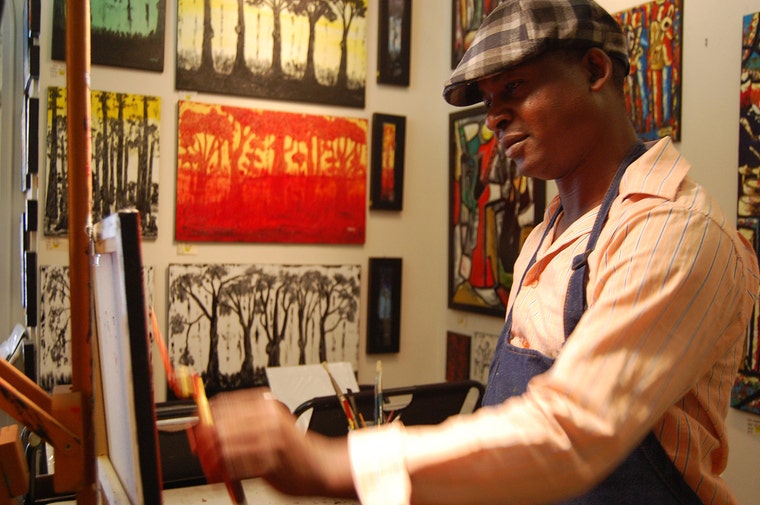 M. Sani is Originally from Cameroon witch is located in western Africa and often referred to the "hinge of Africa". The country surface is comparable to California with a population of 15 million and has over 240 tribes. In his tribe, the images he painted of people were perceived as imitations of God. In 2000, he left his homeland to pursue his dream of sharing his painting with the world.