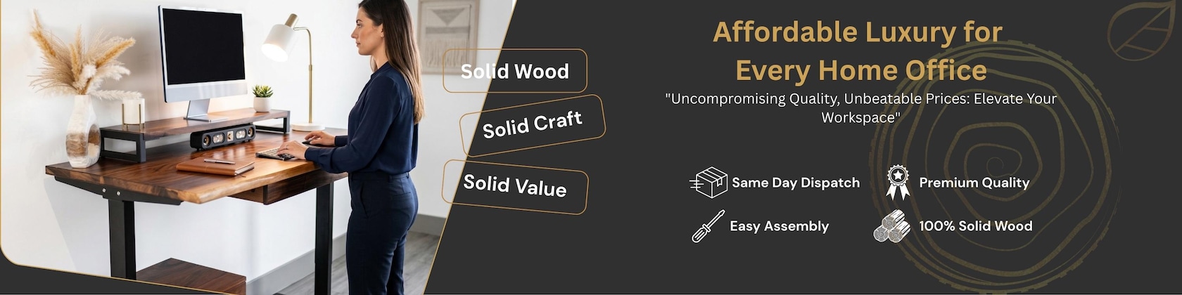 Nous comprenons à quel point le confort est crucial sur le lieu de travail, car de nombreuses personnes passent la majeure partie de leur vie quotidienne au bureau ou à domicile. Et vous voudrez certainement passer ce temps de manière productive et inspirée. Nous utilisons uniquement du bois naturel respectueux de l'environnement pour nos meubles de bureau ergonomiques. Ce bois massif améliore non seulement votre espace de travail avec sa chaleur et sa beauté naturelle, mais favorise également la durabilité, étant un matériau respectueux de l'environnement.