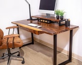 Avec une décennie d'expérience dans la fabrication de meubles de bureau exclusifs en bois massif, nous vous présentons nos produits. Dans le magasin Modern Wood Style, vous pouvez acheter des bureaux debout en bois massif avec des réglages de hauteur réglables, des bureaux en forme de L et des bureaux d'ordinateur fixes avec une large gamme d'options de taille. Pour votre commodité dans la réalisation et l'organisation de votre bureau, nous proposons des accessoires de bureau supplémentaires tels qu'un tiroir sous le bureau, un plateau pour clavier, un tiroir de rangement et un support pour écran, tous fabriqués à partir de bois massif assorti pour compléter parfaitement la configuration de votre bureau.