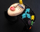 5 out of 5 starsI am so fortunate that no one bought this funky and unique cuff bracelet before I saw it. Bracelet is neatly and creatively beaded The face focal is really eye catching. Artisan communicates with buyer in a super friendly manner , and shipped my purchase quickly. I LOVE face jewelry. Thank you MYJsGallery of artistic jewelry.