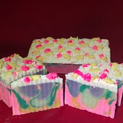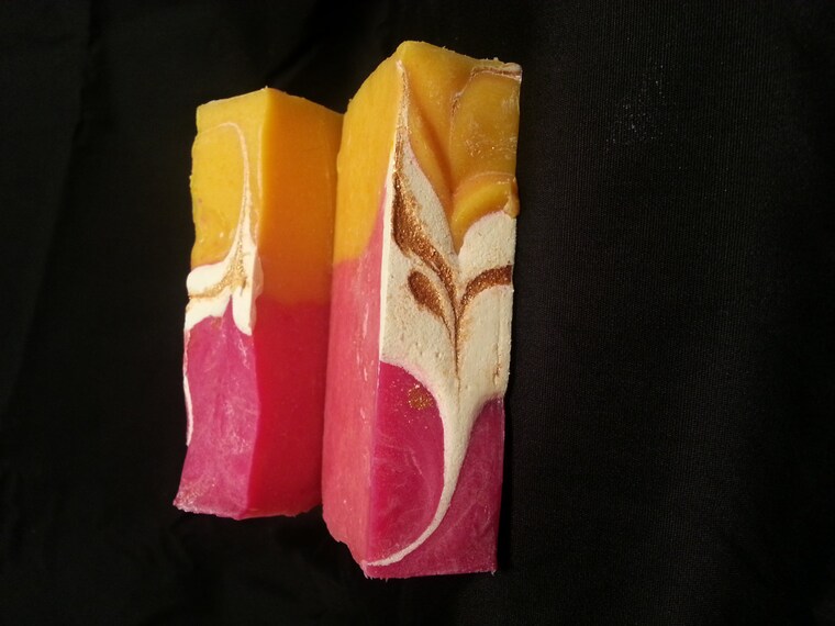 Esta pasión por hacer jabón me ha llevado a investigar y experimentar, lo que ha dado como resultado jabones de diseño. El dicho "feo como el jabón casero" era algo que quería cambiar. Y, espero que estés de acuerdo conmigo, nuestros jabones no solo son hermosos, sino también muy beneficiosos.