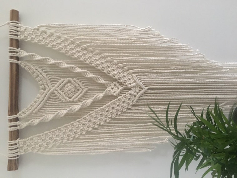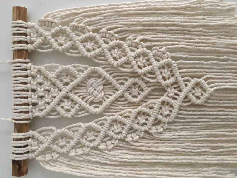 In my shop MacrameMadeByMe you can find various plant hangers and wall hangers. They are all made using macramé technique.