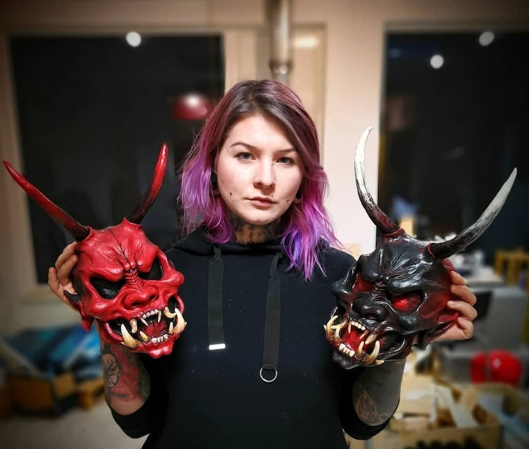 Mad Meow (Gundega Bārzdaine) with my first masks -