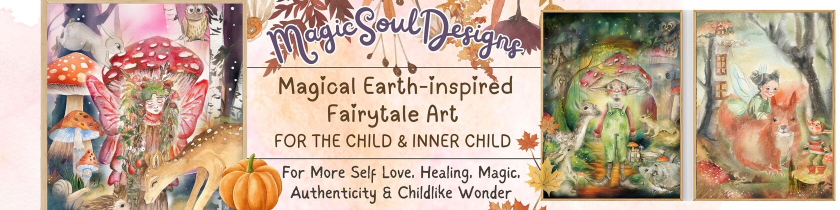 MagicSoulDesigns was born out of the longtime dream to design art that would help others to open their hearts, open up to their own inner magic and heal on a deep level through reconnecting with a very deep and primal part within themselves, the part that is our inner divine child. This vulnerable part, when having been traumatized, shuts itself off completely from the world so that we stop feeling and perceiving the world through the innocent, joyful, curious eyes of a child and block ourselves from the magic within ourselves, from the childlike wonder life has to offer. We are shutting ourselves off from the magic around us, that magical life force that lives in each creature and living plant. It is magic that is born out of the earth, born from her beauty and love.