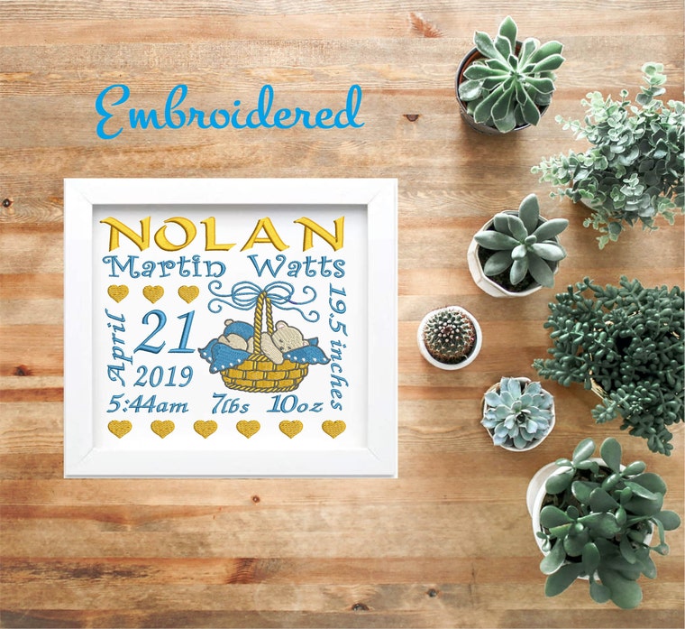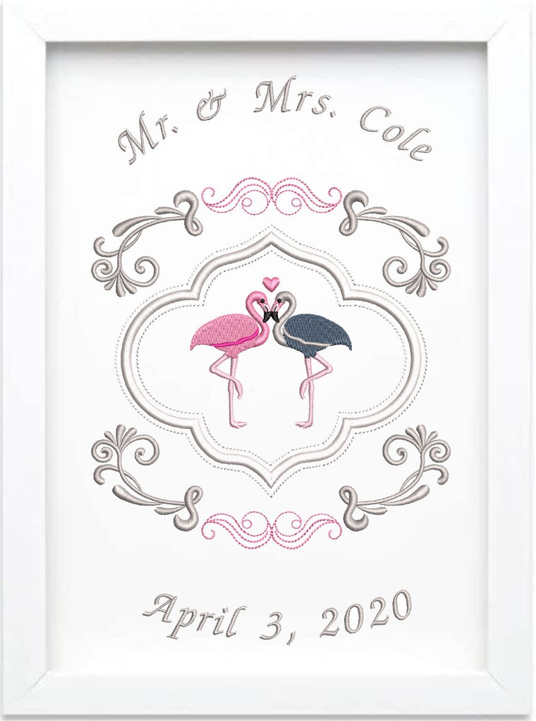 3. Wall art (framed pictures) embroidered for you. We have designs for all occasions: weddings, birthdays, baby shower, etc.