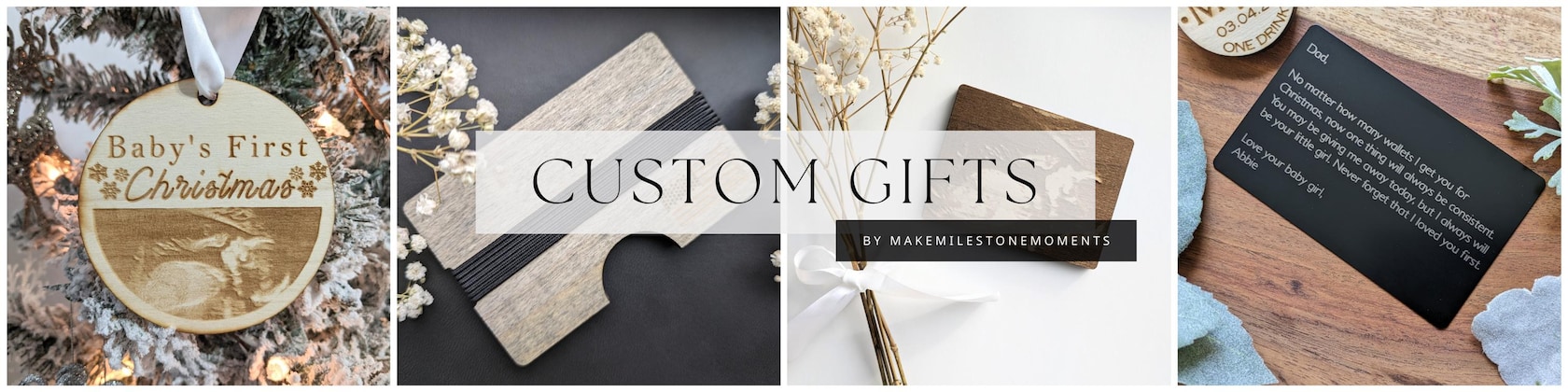 From engraved wedding vow cards to personalized baby announcement frames, each piece is handcrafted to celebrate the moments that matter most. Whether you’re surprising your spouse with a heartfelt anniversary gift, creating unique wedding favors for your guests, or commemorating a first Christmas as a family, we design keepsakes you’ll treasure for a lifetime.