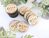 Custom engraved wedding keepsakes including photo frames, wedding vows on metal wallet cards, custom bar chips, QR code honeymoon funds, and personalized drink tickets.