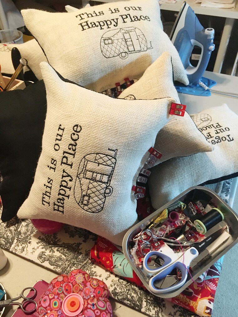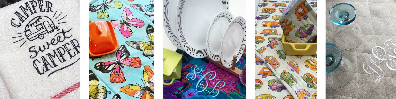 My love of colorful fabrics was gradually filling my studio and getting a little out of control. I started sewing and quilting beautiful kitchen dish drying mats so I could enjoy some of my gorgeous fabrics in my kitchen. After receiving many requests and compliments I decided to make them for others to enjoy. Soon decorating our camper with unbreakable decor became my next passion. Camping is truly my happy place.