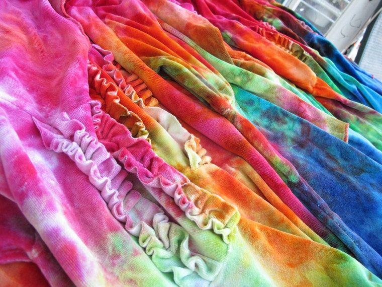 Ich fing an, das Internet zu durchsuchen, um zu sehen, ob jemand anderes Mädchenkleider oder Röcke wie diese machte, und ich konnte nicht finden, was sie beschrieb. Ich kannte ein paar Orte, an denen natürlich lebende, schlaue Mütter gerne einkaufen und handgefertigte Waren tauschen. Ich konnte Windeln aus wunderschönen Bio-Stoffen finden - Hanf, Bambus, Bio-Baumwolle, verschiedene Arten von Velours, viele mit schöner Kunstfertigkeit gefärbt, und Baumwolldrucke, die aus Europa importiert wurden. Während ich eine Stoffwindelmutter war (und bin), konnte ich nicht anders, als zu denken: "Diese Stoffe sind zu schön, um in einer Windelhülle versteckt zu werden. Warum macht niemand normale Kleidung daraus? *Ich* möchte etwas aus Bambusvelours für mich tragen!" Ich wusste, dass, wenn ich das dachte, es andere Mütter wie mich geben musste, die dasselbe dachten. Damals beschloss ich, meinen Etsy-Shop in ein "echtes" Geschäft zu verwandeln, um dieses Bedürfnis zu erfüllen, anstatt handgestrickte Artikel zu verkaufen, die ich hier und da herstellte, wie ich es seit einigen Jahren getan hatte. Jeder Artikel, den ich herstelle, ist einzigartig, da der Färbeprozess jedes Mal schöne, einzigartige Ergebnisse liefert. Kunden aus der ganzen Welt sagen mir, dass meine Artikel ihre und die Favoriten ihrer Kinder sind, und ich bin sicher, dass sie auch die Favoriten Ihrer Familie sein werden.