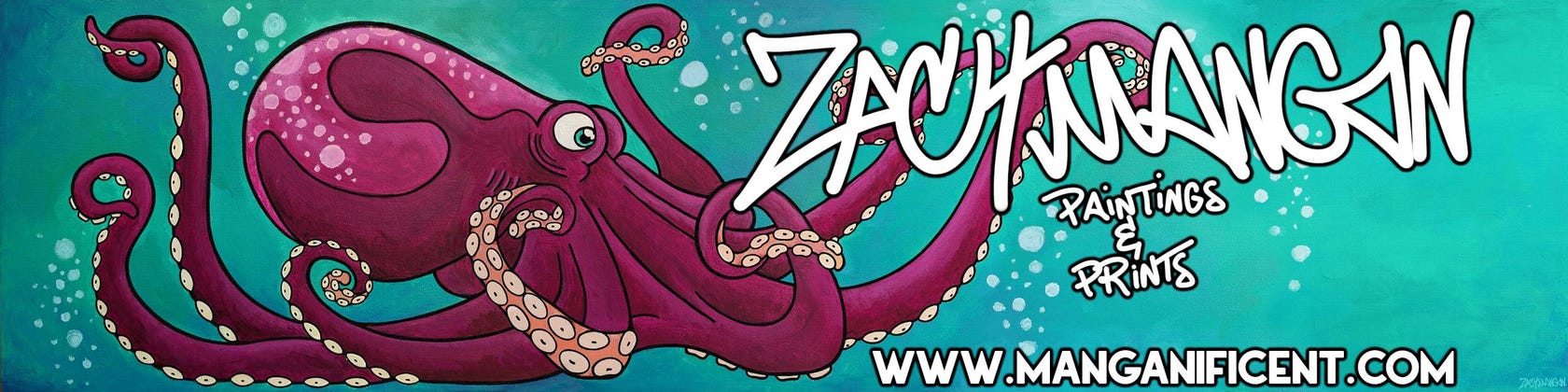 If you're interested in carrying my prints, stickers, color books, or postcards in your store, I'm happy to work with you. Please send me an email @ zachmangan@gmail.com and we can work the details out