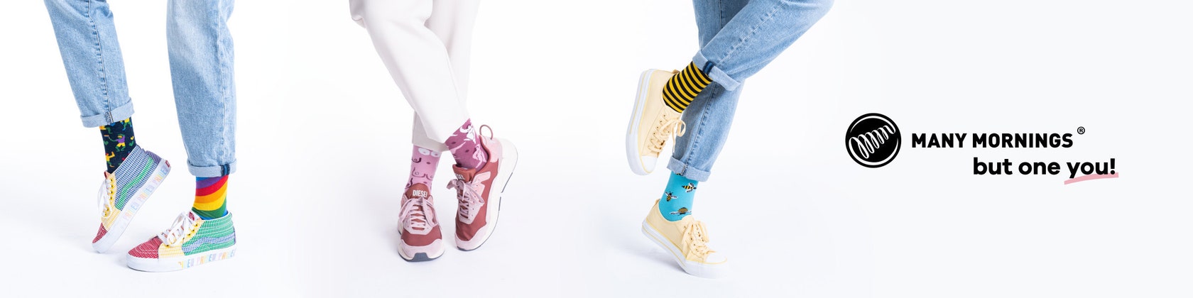 Many Mornings socks are perfect for people who find order in chaos, avoid banality, and above all - are more often driven by the heart than by reason. Just like us when we’re coming up with new concepts, and creating new designs and models. It's all for you! Fall in love with our mismatched socks and wander away with them into the unknown! Mismatched (but matching) socks from Many Mornings are an element of anyone's wardrobe which can't be passed by without a second glance. These are socks to enjoy life: to run around the city or party, for meeting friends, lazing around, or being hard at work. They love to be the center of attention, to be complimented, and to make people smile.