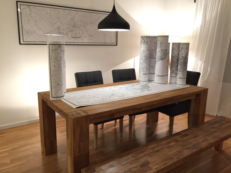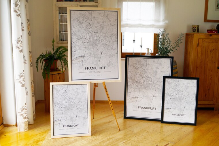 Our maps in beautiful handmade frames. Just ask us for current availability.