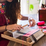 Aussie girl now living in Brooklyn NYC. Maryanne is lucky enough to have a life filled with colours and textures. She makes weavings and wall hangings as commissions, teaches beginners weaving classes and makes beginner weaving kits.