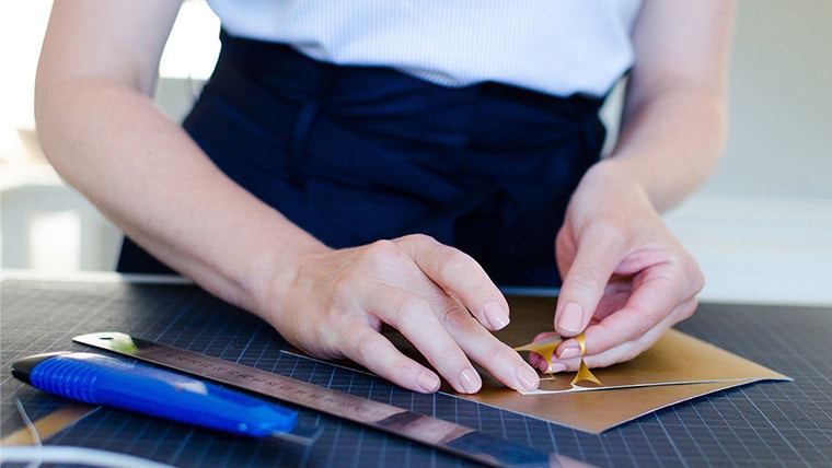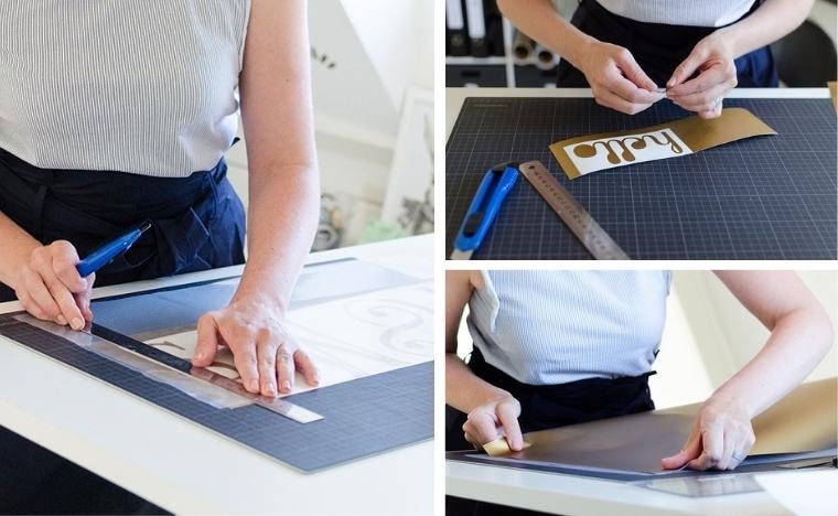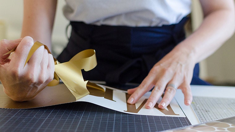 Weeding the excess vinyl away to reveal the beautiful pattern of the stickers. Photo Credit: http://vicky.mclachlan.nl -