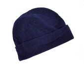5 out of 5 starsshipped fast, I got the 12-18 month for my 6 month old and it fits with room to grow. This one is like a standard tshirt material feel. I had ordered the black and white striped hat as well. That one is softer but this navy blue is somewhat thicker and has more resistance to it so I use this one for when I take my baby out for a quick walk and dont need to put a winter hat on.