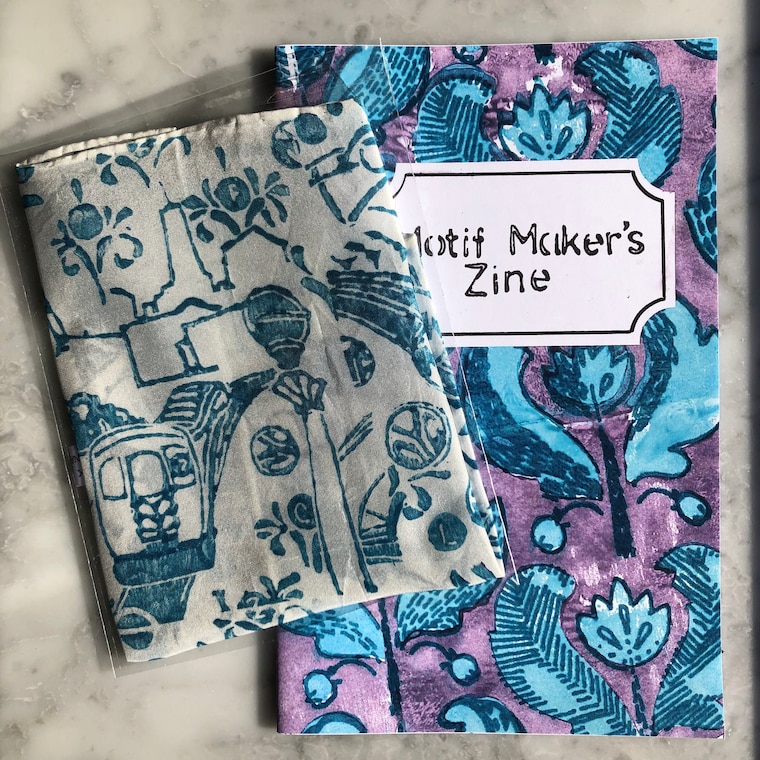 The Motif Maker's Zine and a packaged Handprinted Hankie -