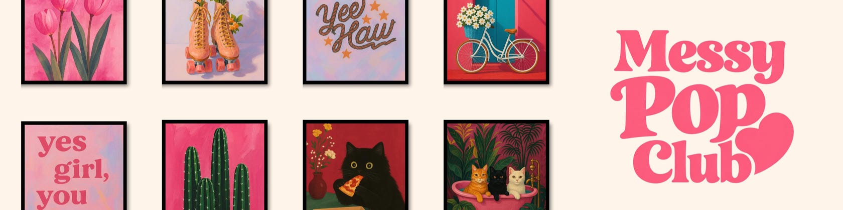 Each artwork is thoughtfully created to work as a visual mood-setter — something that makes a room feel more like you. Whether it’s for your bedroom, studio, office, or gallery wall, Messy Pop Club is here to celebrate color, creativity, and imperfect beauty.