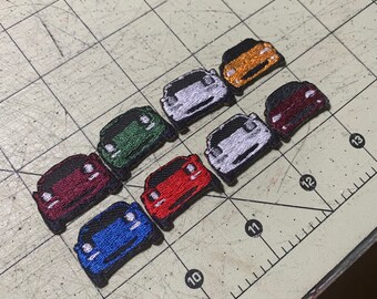Teeny Tiny embroidered Miata Patch iron on or Velcro. Great for bags, shirts, hats and more! Available in NA or NB. Customizable colors