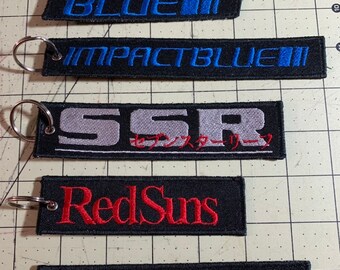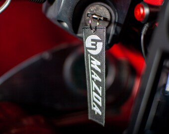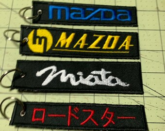 Mazda key-tag in Japanese Katakana. Great gift for the car lover! JDM, Miata, Protoge, RX-7 custom colors! Embroidered