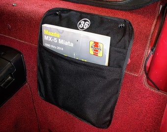 Miata 2 Pocket Rear Deck Pouch - customizable, holds maps, books, pens and hairstyling equipment. Great gift!