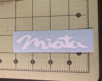 Miata Logo Script Decal Sticker, 4" Long & 1" high. Choose your color, Great for binders, folders, cars, drinkware-Free Shipping within USA!