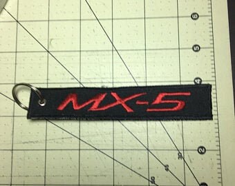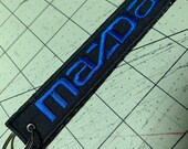 Retro Mazda logo Miata Key Tag 5" , embroidered tag, custom colors, great car enthusiast gift