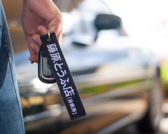 Initial D: Fujiwara Tofu Shop Key Tag 5" long by 1" high - Drift team, custom embroidered, black and White. Great gift item!