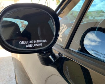 Decal "Objects in Mirror are Losing" - great for Miatas! Sticker for cars, books and more! For rear view mirror 3.5" long
