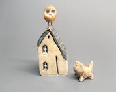 5 out of 5 starsNicely crafted house, the roofs on both houses I purchased, are so nicely detailed. The 🦉 is a wonderful touch!! 🤎 🩵 The added little kitten is such an adorable punch of cuteness! Thank you!! 😊 💛
