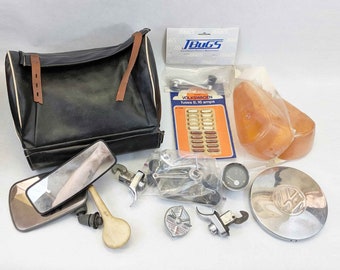 1970's Volkswagen Parts Lot. Leather Headrest, Misc Parts.