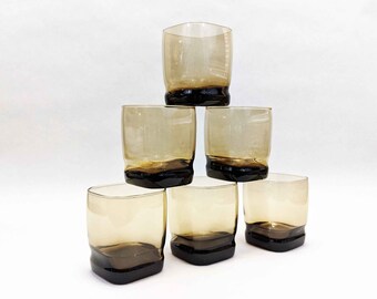 1970's Rock Glasses. Modern, Smoked. Set of 6.