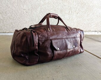 1980's Leather Weekender / Overnight Bag. Classic Dark Brown Leather.