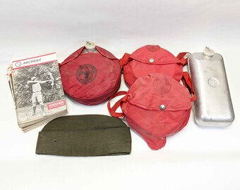 1980's Boy Scouts Mess Gear, Garrison Cap and Merit Badge Book Lot. Vintage