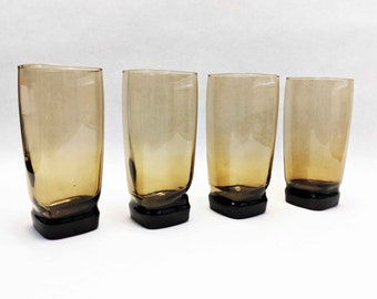 1970's Glass Tumblers. Modern, Smoked. Set of 4.