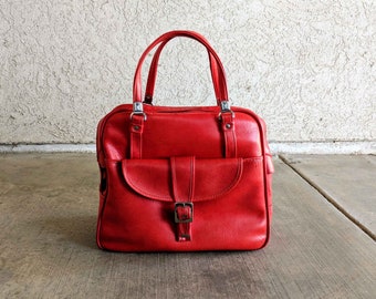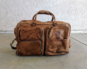 1980's Leather Weekender / Overnight Bag. Classic Brown Leather.