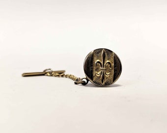 1960's Tie Tack: Fleur-de-lis in Gold, Silver Tone. Vintage Neck-wear Accessory.
