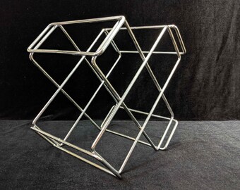 1960's Wire Wine Rack in Stainless, X Shaped Countertop Wine Bottle Storage.