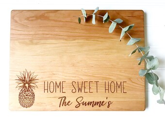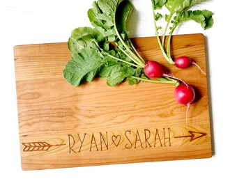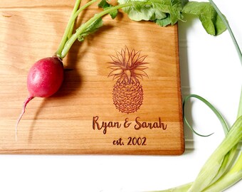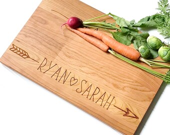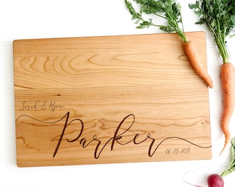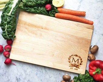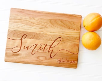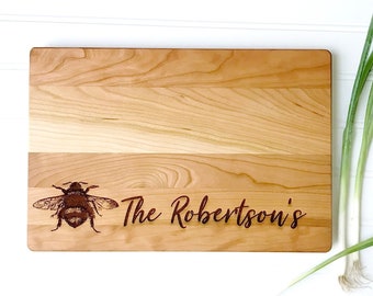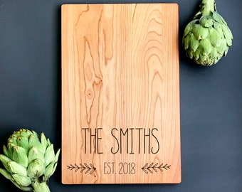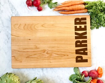 We source our cutting boards here in the Virginia countryside, working with a local company with nearly a century of experience in wood making. We choose beautiful maple and cherry hardwoods, then precision engrave our custom designs onto them in our Virginia studio. We do not use chemicals, stains, or varnish on our cutting boards.