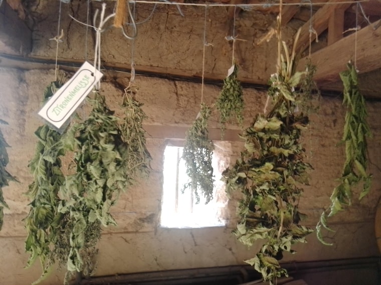 Authentic herb drying in our historic French farmhouse. -